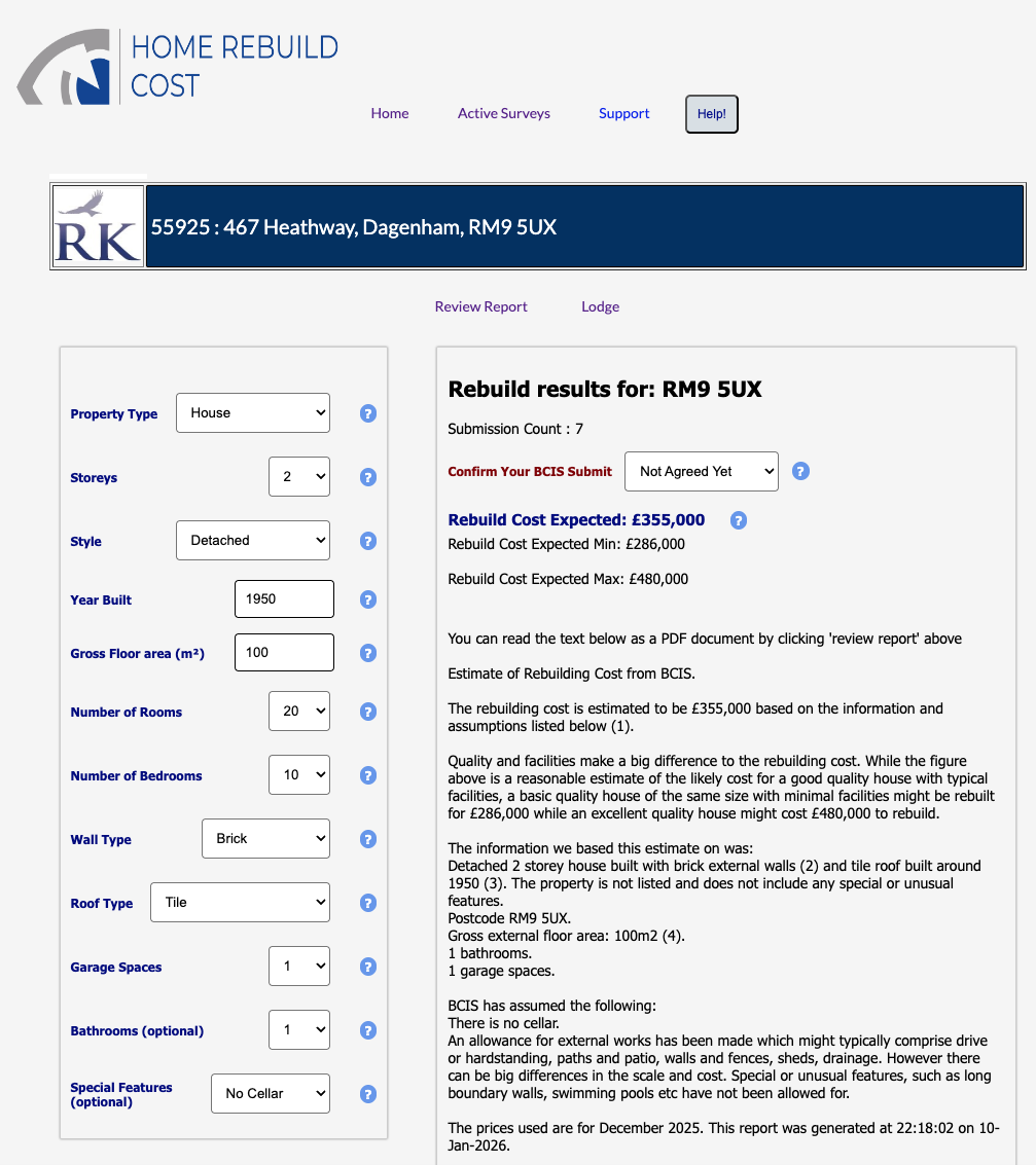 BCIS Screenshot - These are the only data fields you'll need !